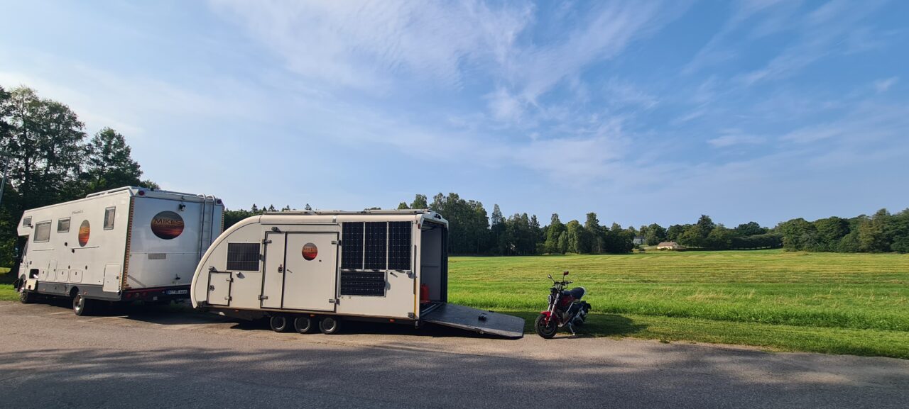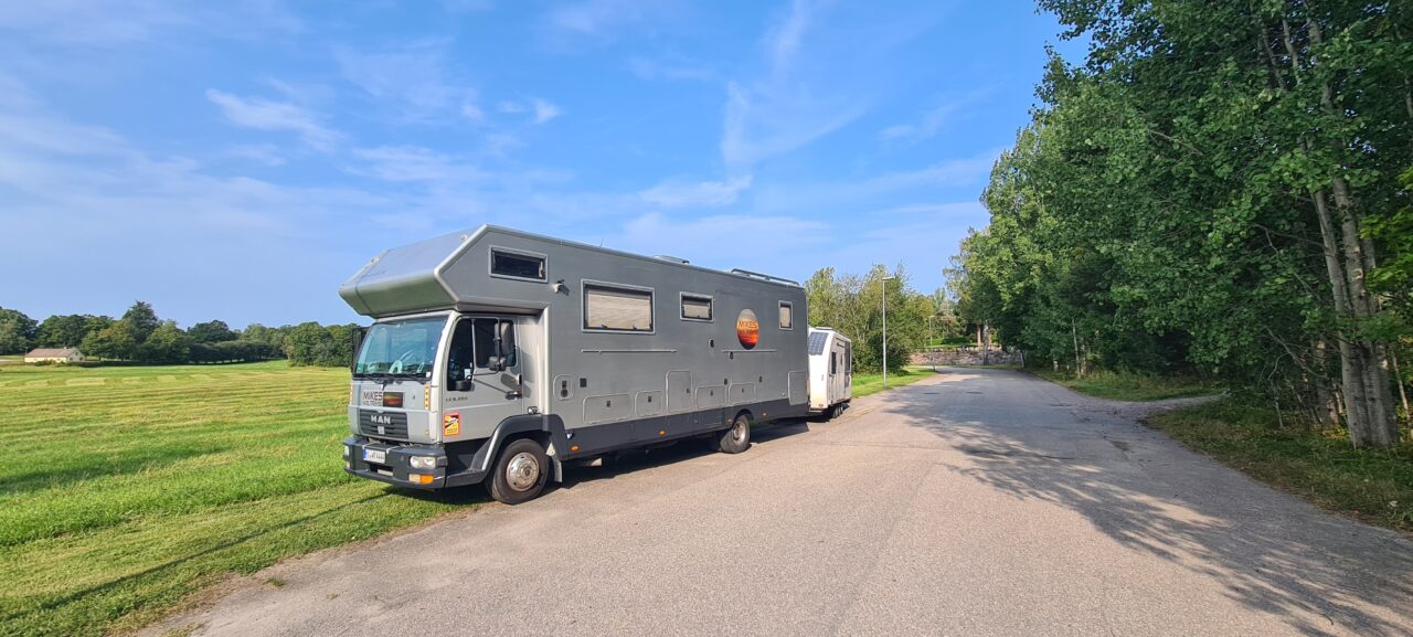 (Gävle /Mittelschweden) Jörg aus Aachen hatte den sehr schönen Standort in der Nähe der wunderschönen Kirche gefunden. Allerdings direkt unter Bäumen. Für die Solarmodule eher ungünstig.