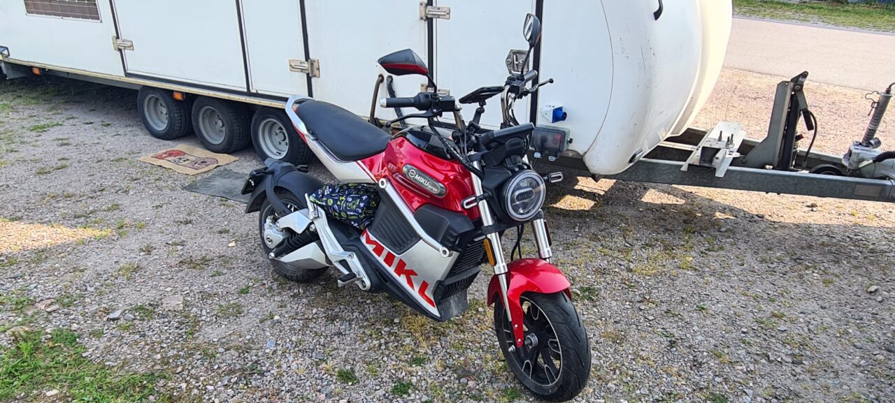 Das kleine eMotorrad hatte ich bereits am Samstag ausgeladen. Das geht sehr schnell und lässt sich auch in wenigen Minuten wieder fest verzurren.