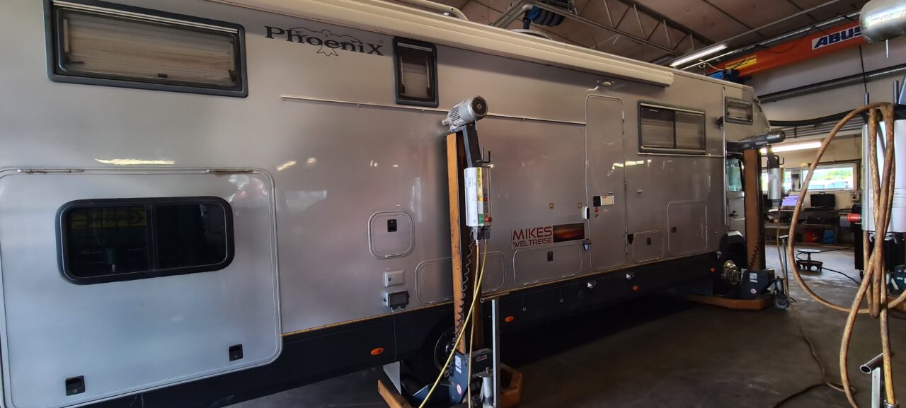 In der MAN Werkstatt wegen des einen Keilriemen, der leider riss.