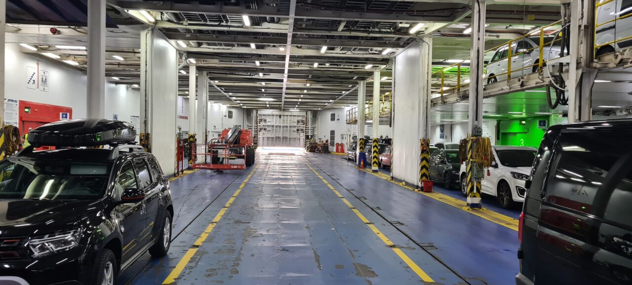 Aufgrund der Tragödie der Estonia (siehe unten) hat jede Fähre in Europa jetzt zusätzlich ein riesiges Schott. Das hat über fünf Minuten gedauert, ehe es vollständig geschlossen war.