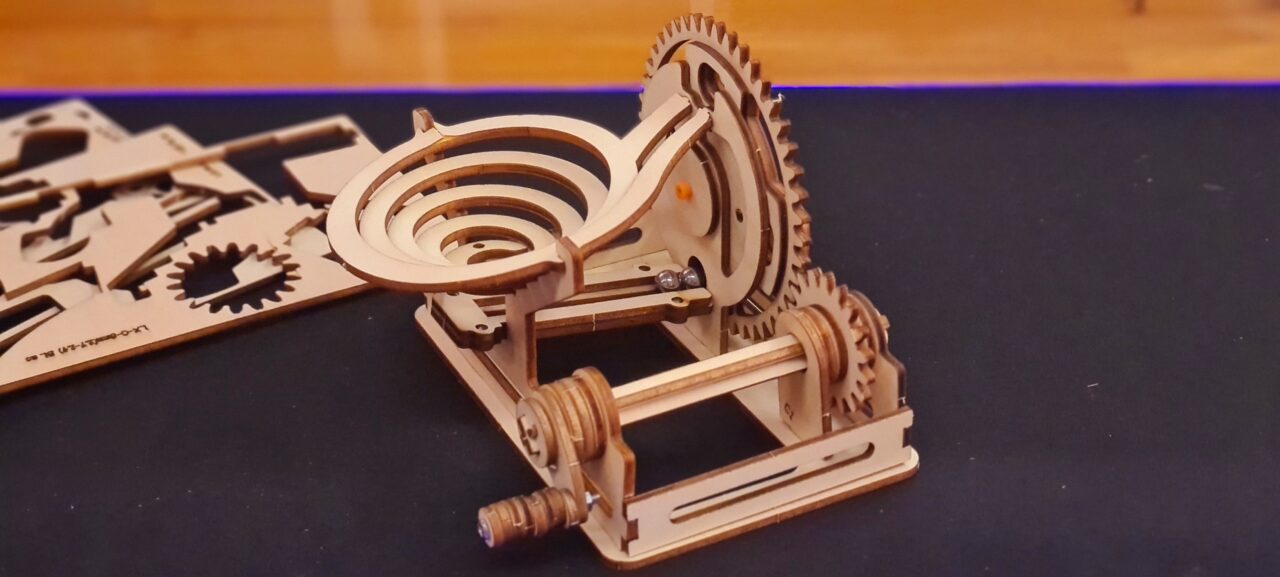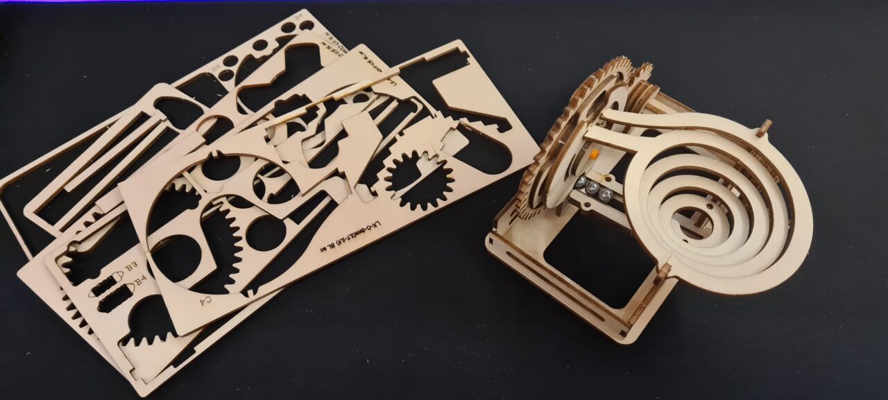 Zum Beispiel 3D Puzzle, aus federleichtem Holz per Laser geschnitten.