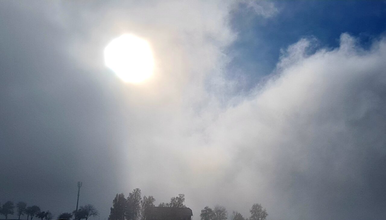 Gegen Mittag kommt die Sonne durch. Genug für die Solarmodule, im Moment zuwenig um den Nebel komplett zu vertreiben. Unterhaltung genug!