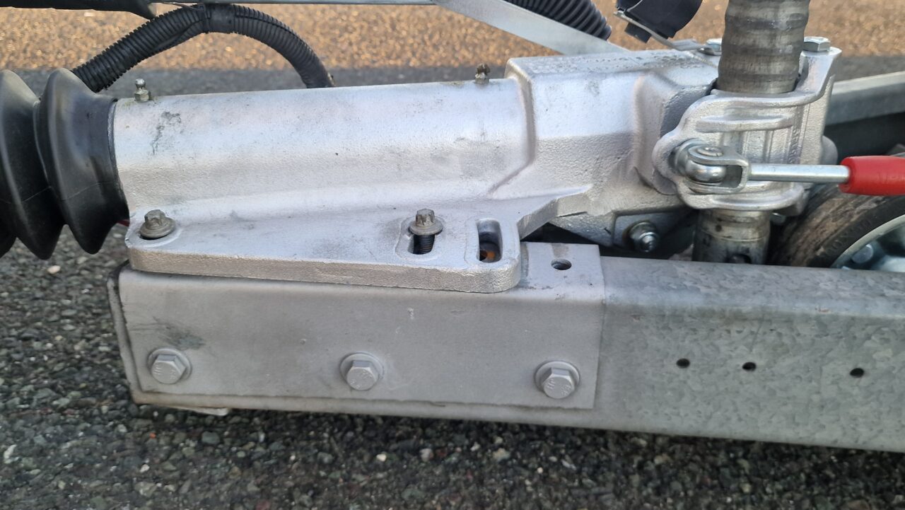 Eine Schraube, von vier, hat sich bei der Auflaufeinrichtung gelöst. Ursache ist, daß das Untergestell sich leicht verzogen hat. Vermutlich in Göteborg kann mir das passiert sein.