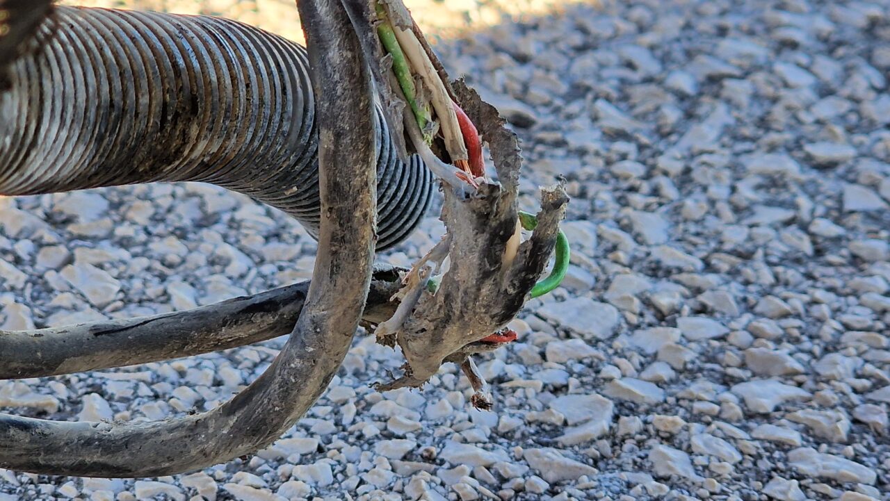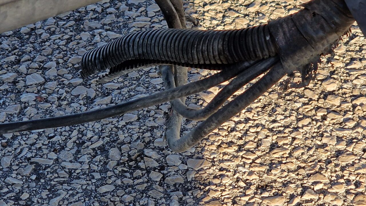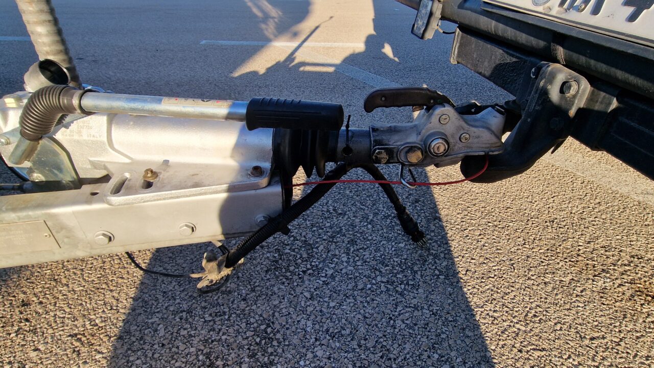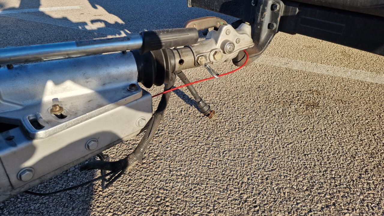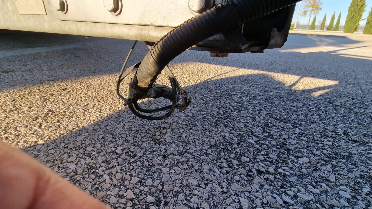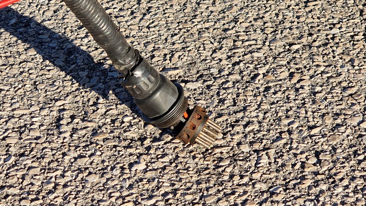 Der Stecker hat sich während der Fahrt von der Drehhalterung gelöst. Dadurch schliff die ganze Leitung auf dem Asphalt.
