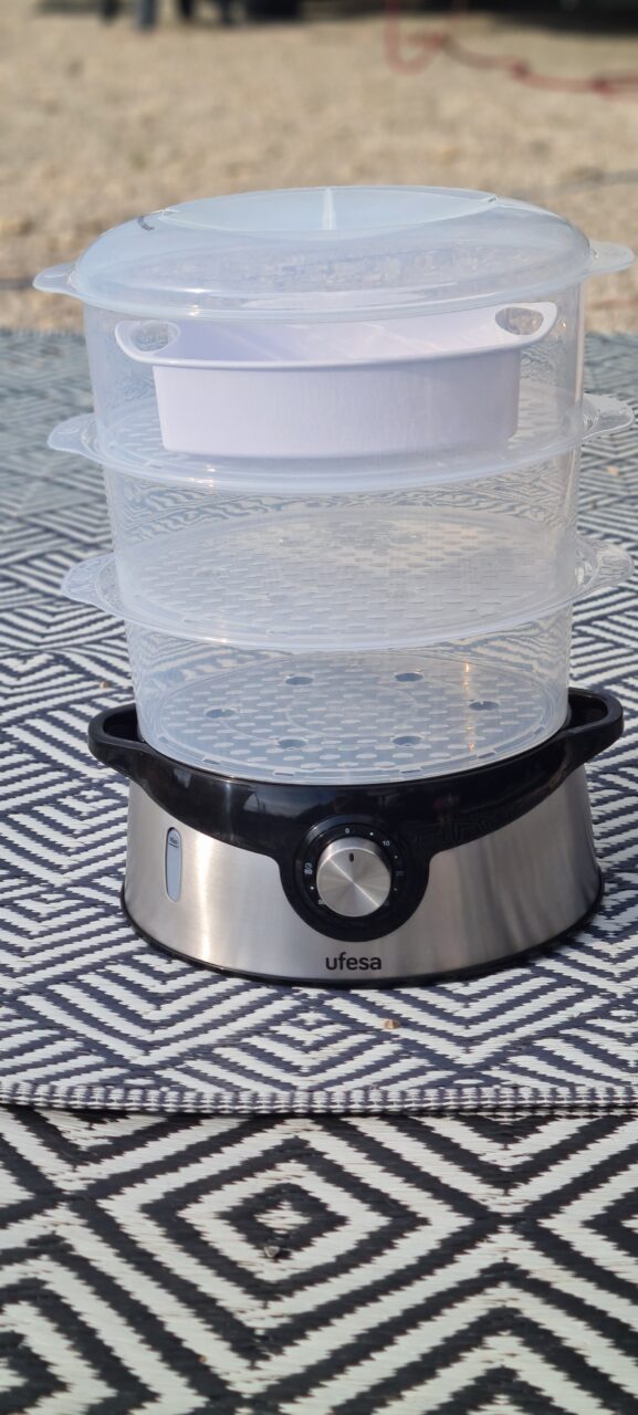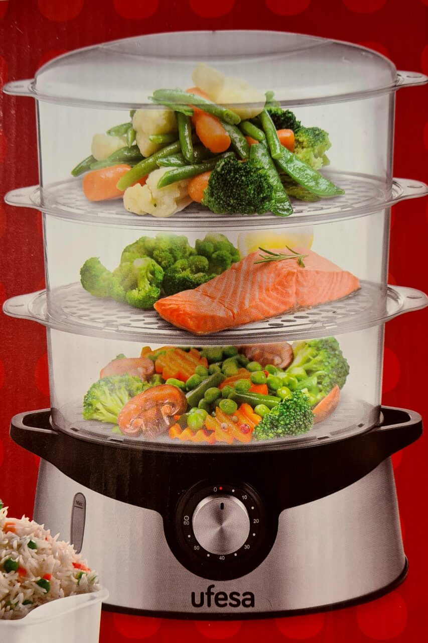 Nun kann ich neben Reiskocher, Microwelle, elektrischem Backofen mit Grill, Gas-Backofen sowie Heißluftfriteuse und SandwichGrill auch den Dampfgarer für das Kochglück einsetzen.