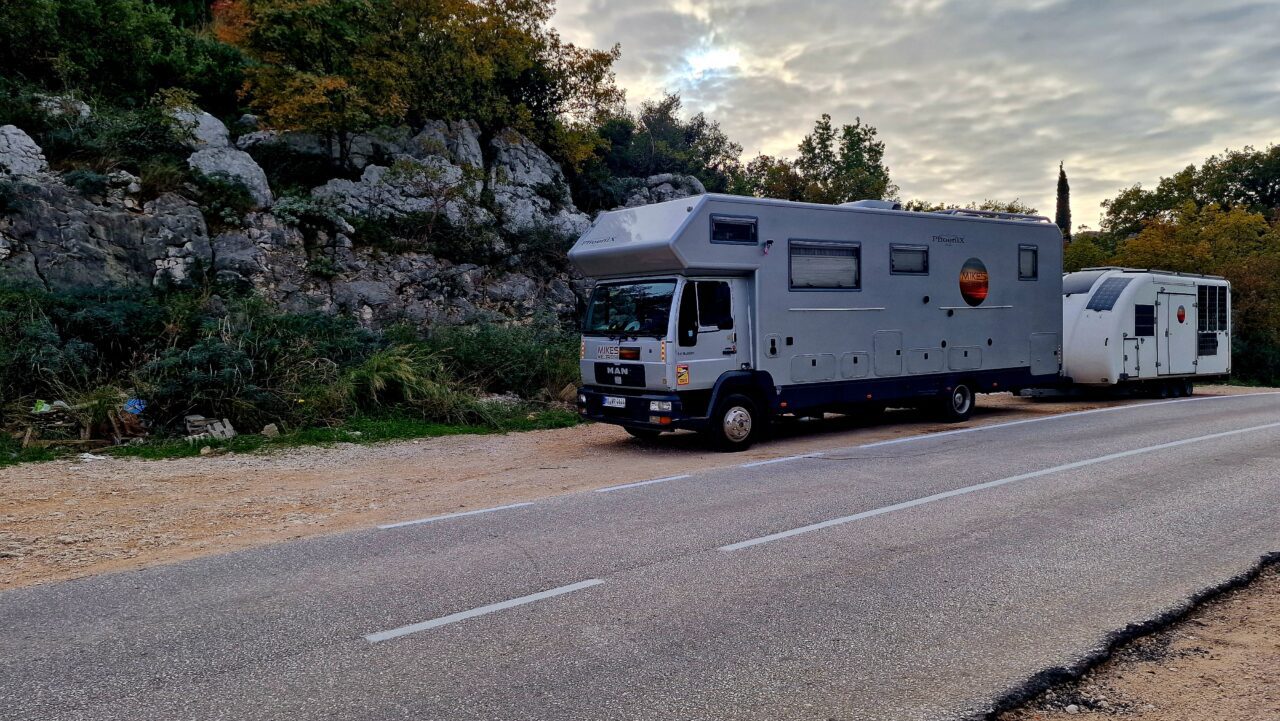 (Dubrovnik /Kroatien) Das war wirklich nervtötend und abenteuerlich. Gefühlt mehr als 70% aller „Straßen“ kann ich überhaupt nicht oder nur sehr aufwendig mit dem Lebensmobil plus Anhänger, immerhin über 17 Meter Gesamtlänge, befahren.