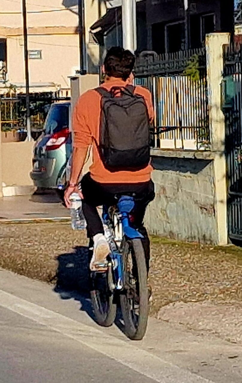 (Griechenland, Europa und die Welt) Mit der rechten Hand telefonieren, in der linken Hand eine Flasche Wasser tragen und freihändig aktiv zum Organspender werden.