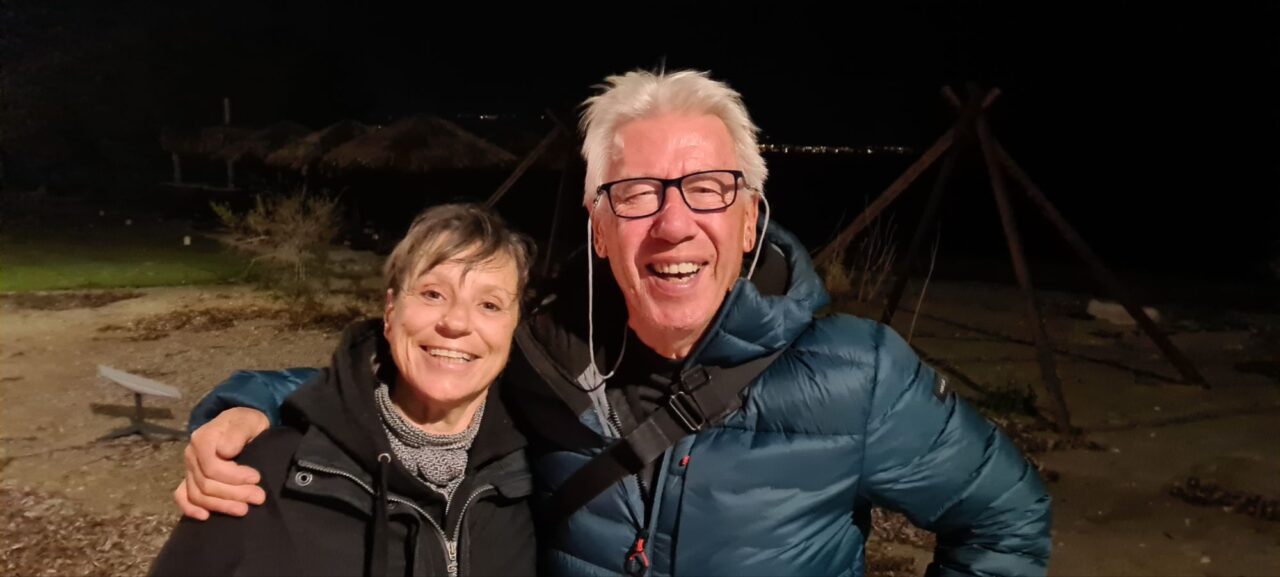 Bald darauf kam sie dann mit Frank noch einmal zu mir. Die beiden gehen regelmäßig hier am Ionischen Meer am Strand spazieren.