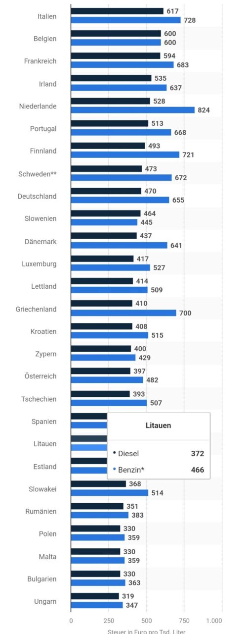 Verbrauchssteuer auf Benzin* und Diesel in den Mitgliedstaaten der Europäischen Union im Jahr 2022