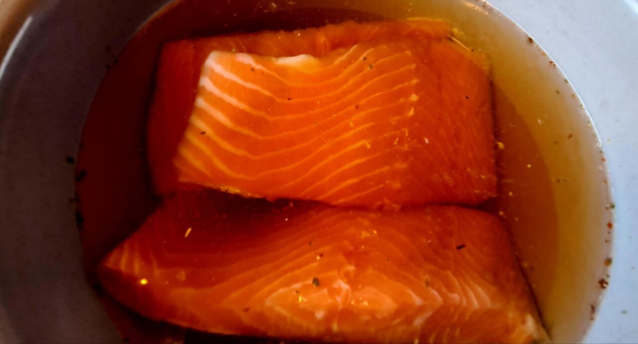 Die beiden hatten mich zum Abendessen eingeladen und nachmittags frischen Lachs in eine gewürzte Salzlake ein paar Stunden mariniert um danach in ihren Räucherofen gut drei Stunden den Fisch über Buchholzspänen zu räuchern.