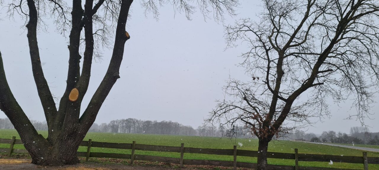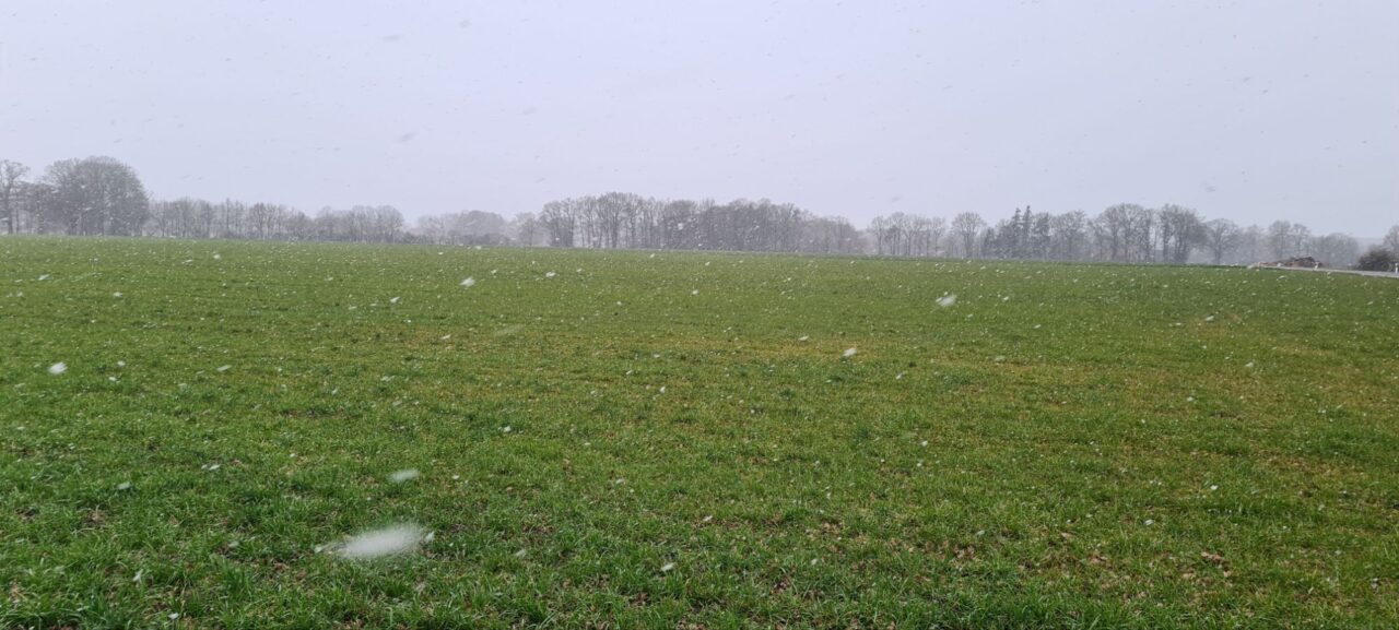 Eine ganze Woche lang und jetzt seit ein paar Tagen heftige Kälte und hier in Raddesdorf, am Standort meiner neuen Scheune, heute Morgen ein Wintereinbruch mit Schneefall.