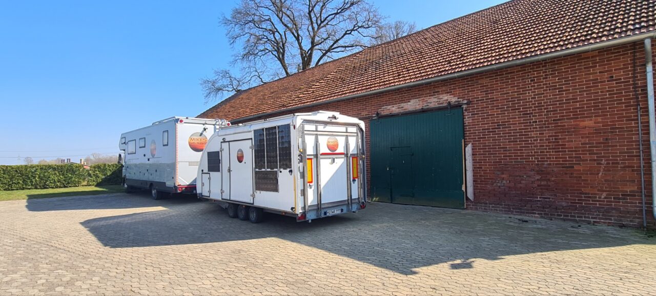 Vor zwei Tagen die riesige Industrie Haubenschrumpfmaschine und den Hubwagen aus der ersten Scheune geholt.