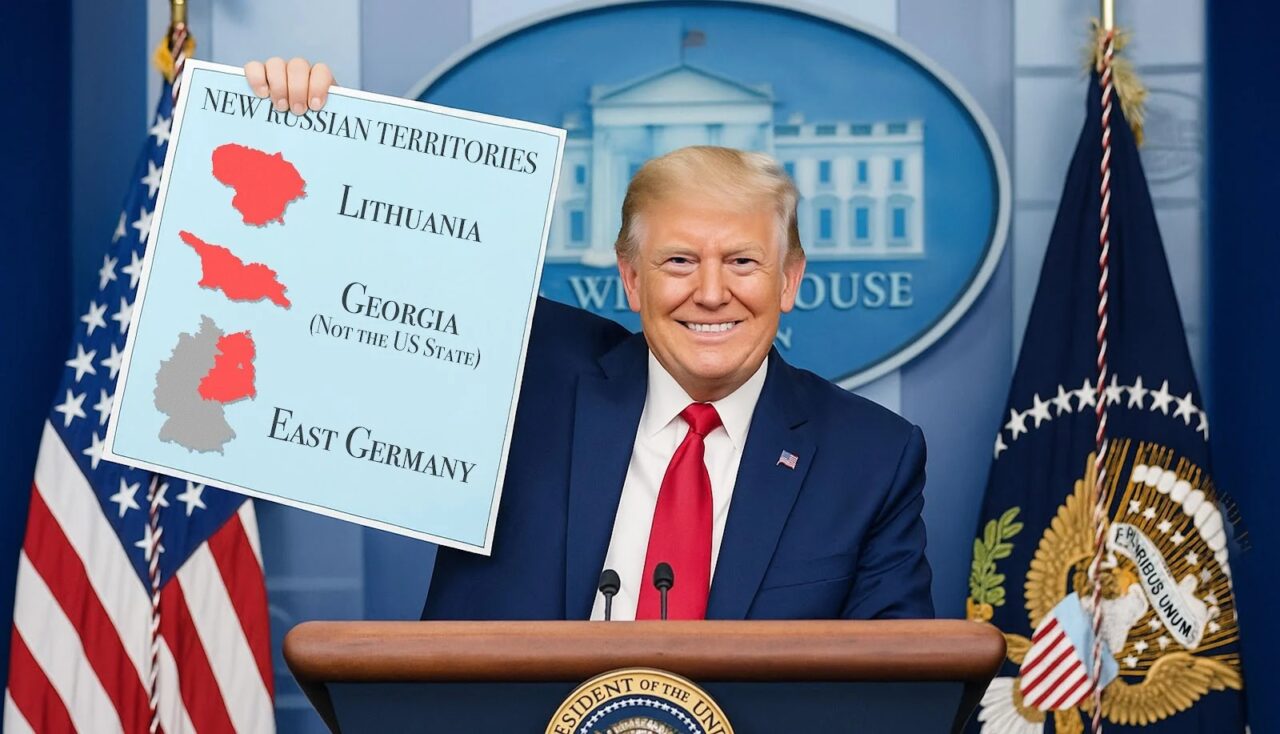 Washington, Moskau (dpo) – Er ist der Meister des Deals: Um die historische Einigung der USA mit Russland im Ukrainekrieg zu bekräftigen, hat Donald Trump heute noch spontan Litauen, Georgien und Ostdeutschland als Angebot an Russland obendrauf gelegt.