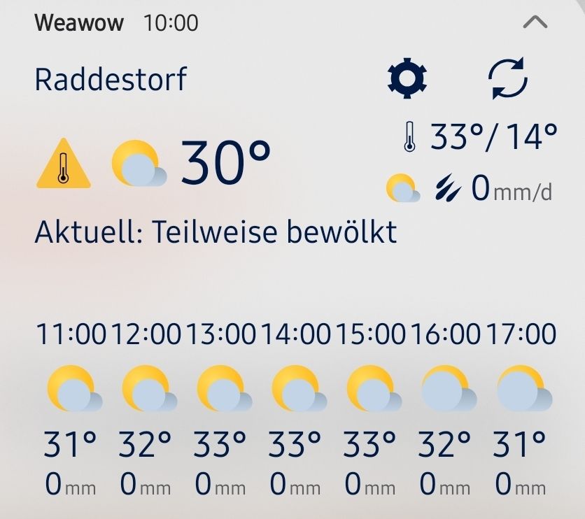 Bereits um 10.00 Uhr morgens über 30° in der Sonne.