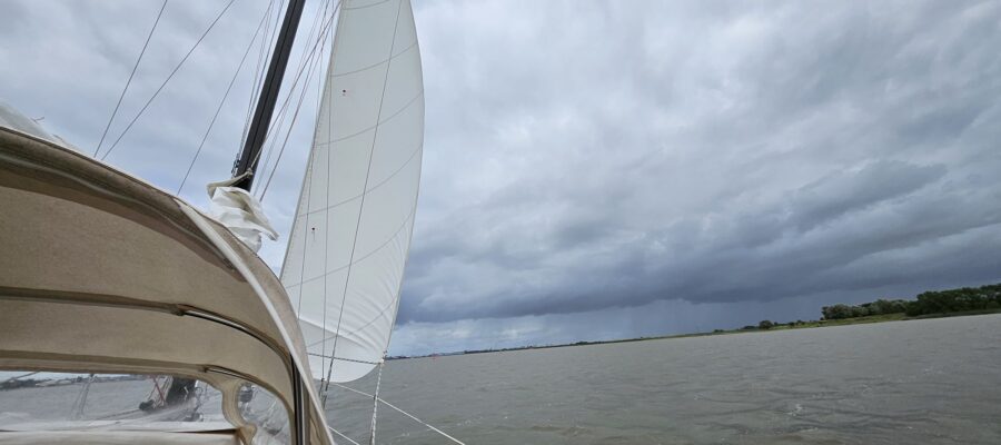 (Nordenham /Deutschland) Wir fahren raus, ohhhhhh die erste Segelstunde in meinem Leben. Und das bei sehr interessantem und intensiven Wetter.