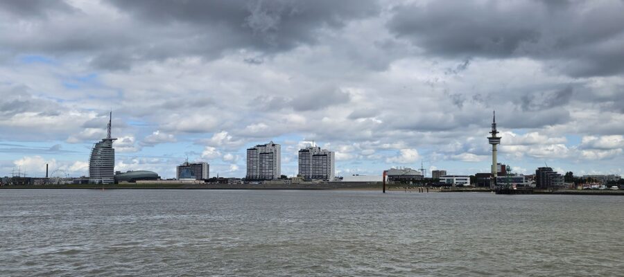 (Weser /Bremerhaven /Deutschland) Sehr bewölkt, angenehm warm und nicht zu kalt. Hoffentlich regnet es nicht, ohoh.