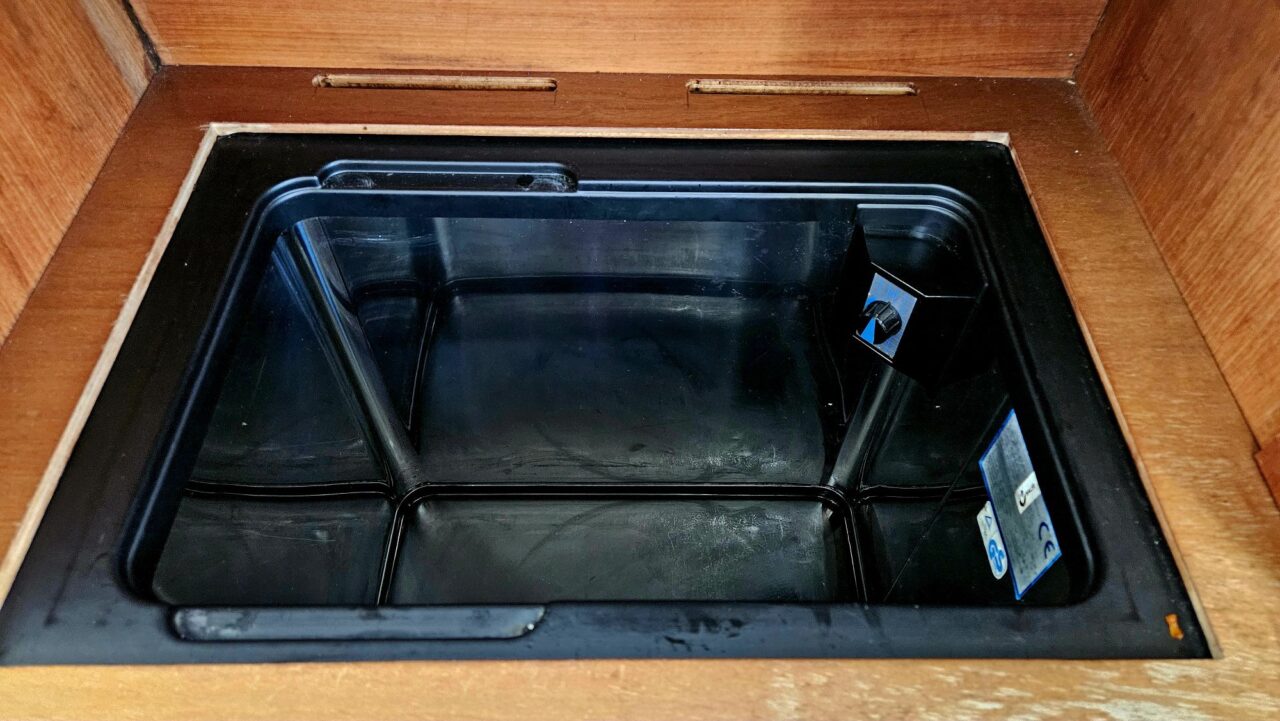 (Nordenham / Deutschland) Der Kühler auf der kleinen Segelyacht ist nicht nur eine Kühlbox sondern ein sehr leistungsfähiger Gefrierschrank mit einem unteren Bereich.