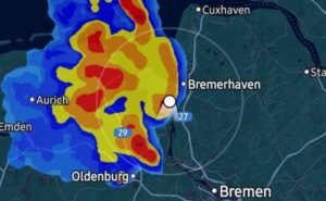 (Nordenham /Deutschland) Während der tollen Feier gab es temporär einen heftigen Regen. Die Bilder sind einschüchternd.
