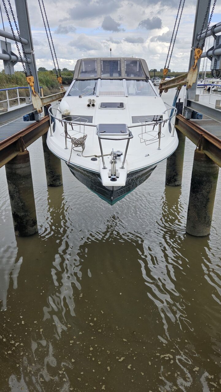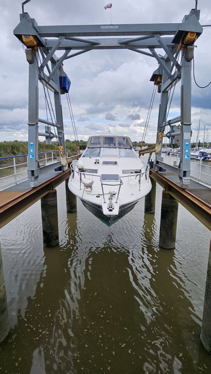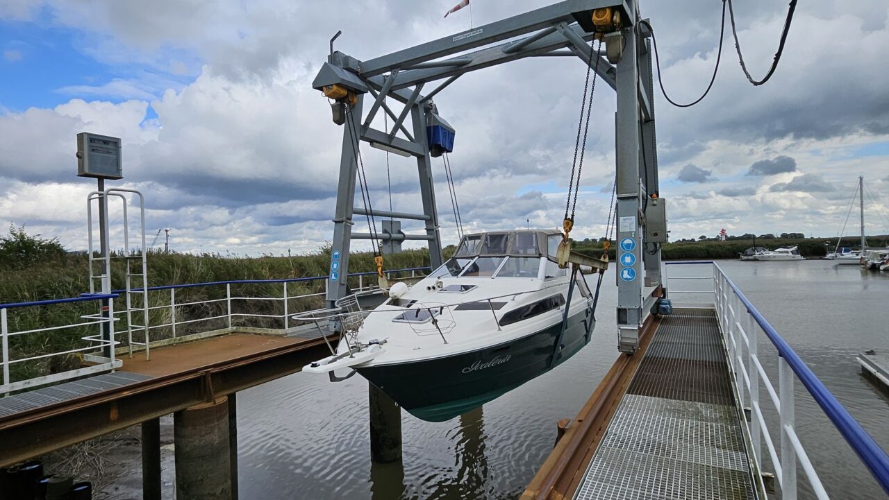 Aus dem Hafen auskranen wie hier bei einem anderen Boot zu sehen.