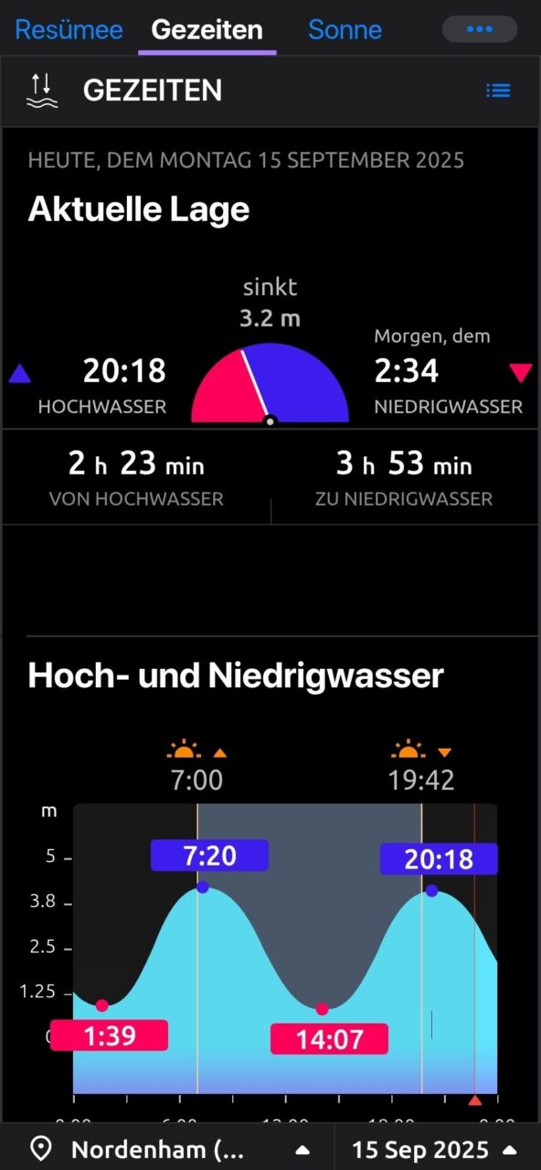 Im Moment noch Hochwasser und das Boot schwankt heftig hin und her.
