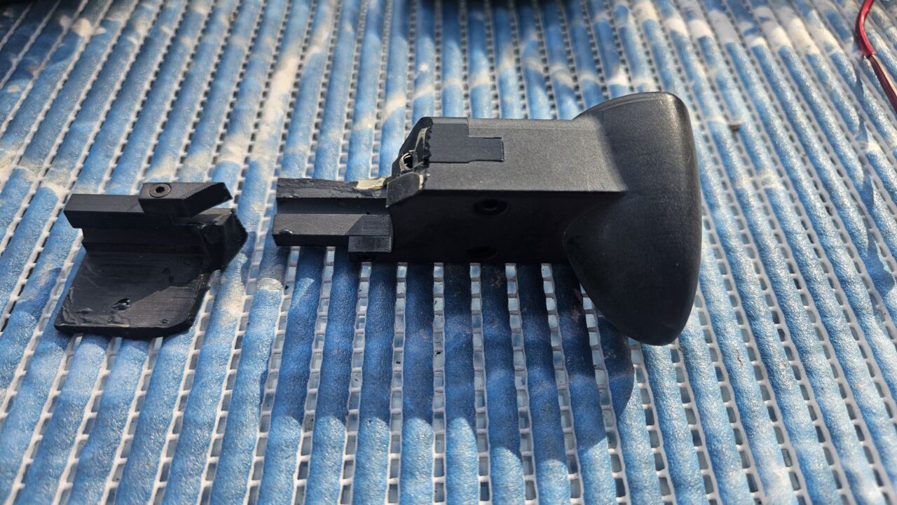 (Raddestorf /Deutschland) In Nordenham hatte ich Zwei-Komponenten-Kleber gekauft und den Hebel zusammen geklebt. Hatte extra noch Spannzangen gekauft damit es zuverlässig klebt.