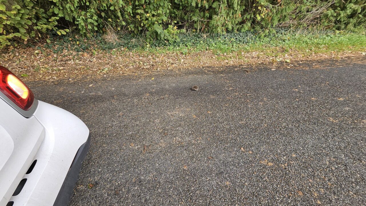 (Raddestorf /Deutschland) Gerade aus Uchte vom Einkauf zurĂŒckgekommen und gesehen das ein kleiner Igel sich von seiner Familie mit einem Suizid trennen wollte. Ohoh. đ°đȘ