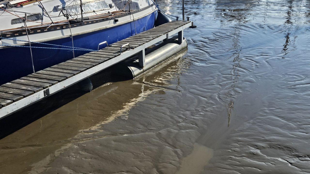 (Nordenham /Deutschland) Im Yachthafen in dem sich auch meine kleine Segelyacht mit Schlafmöglichkeit befindet ist der Unterschied zwischen Hochwasser und Ebbe mehr als 4 (!) Meter. Das ist wirklich gewaltig.