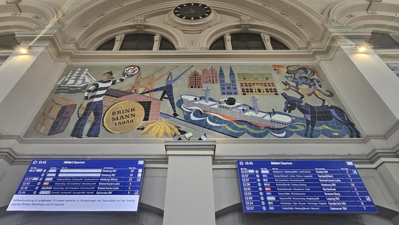 Die große Bahnhofshalle mit ihren Wandgemälden von 1890 (u. a. „Bremens Häfen und Handel“) wurde restauriert.