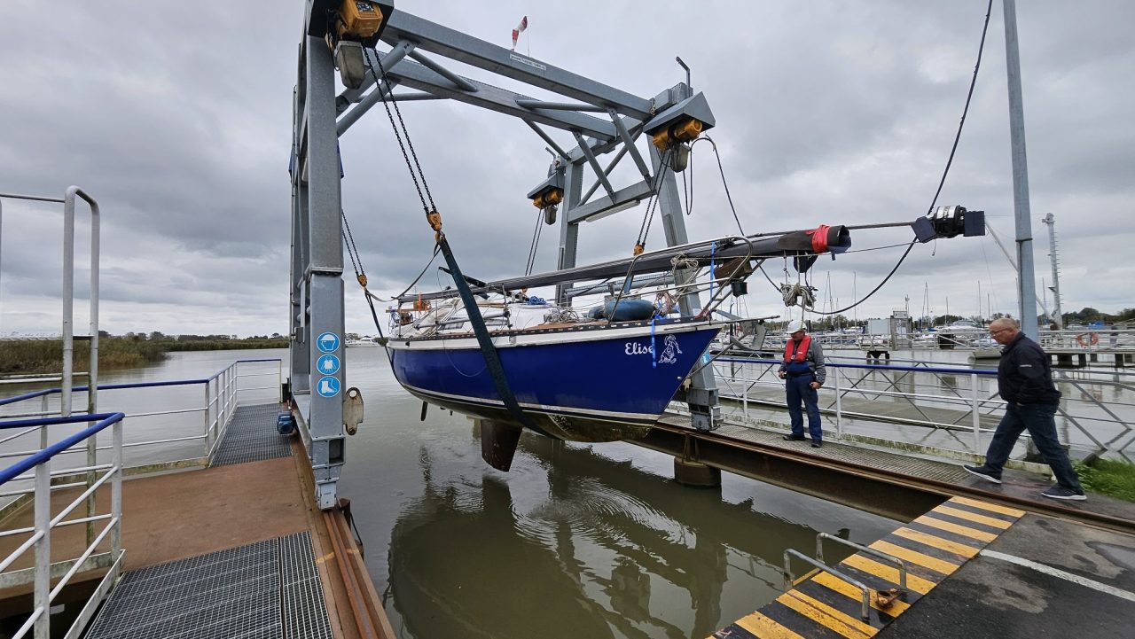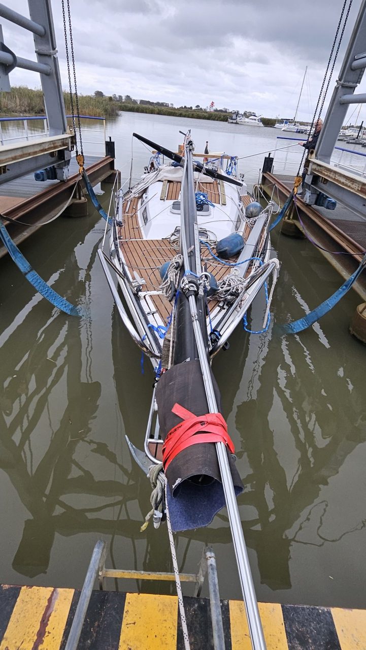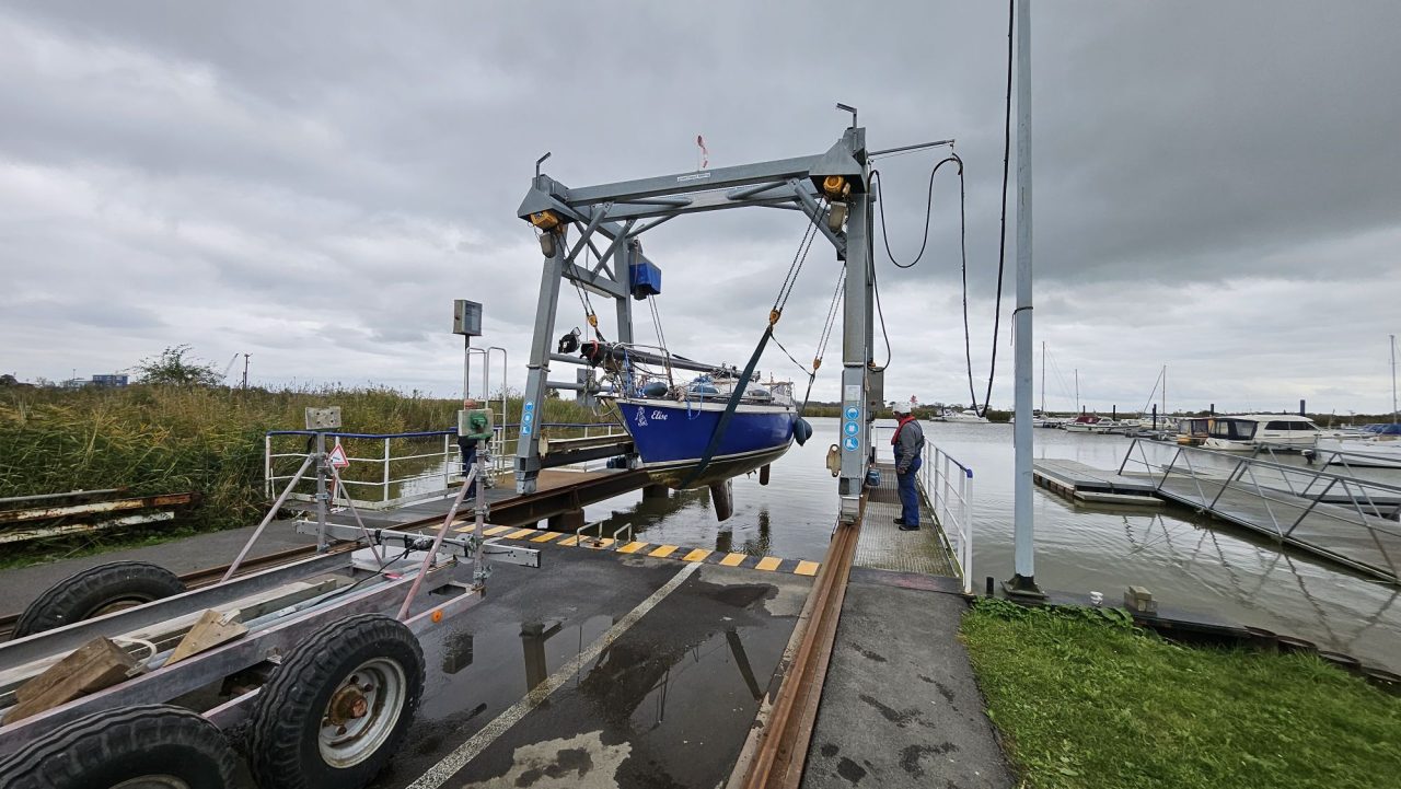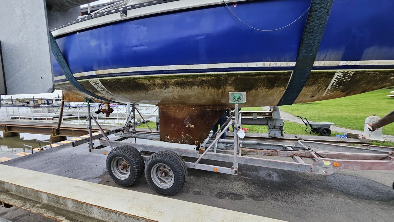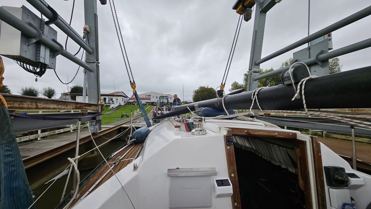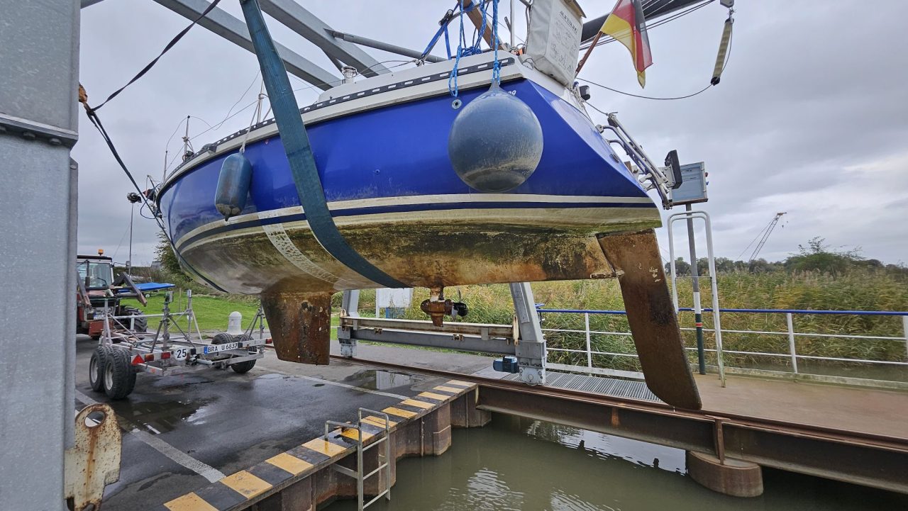 Zuerst einmal nach Nordenham Blexen fahren und den Trailer etwa 12 km zum Sportboothafen bringen.