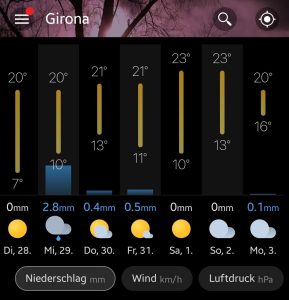 In Girona, Katalonien, ist das Wetter weiterhin gut und angenehm.