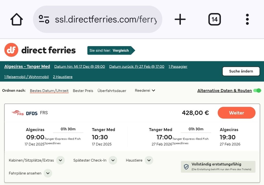 Und mich schon einmal ein wenig über die Fähren nach Nordafrika informiert.