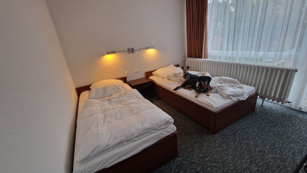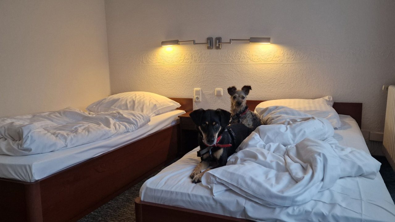 Hundis waren auch dabei, allerdings überwiegend im Hotelzimmer und zwischendurch mit mir im Glacies, einem Grüngürtel in der Stadt Minden. Die beiden weißen Schäferhunde des Hotels, Hugo & Hannes, beschützen natürlich ihr Revier.
