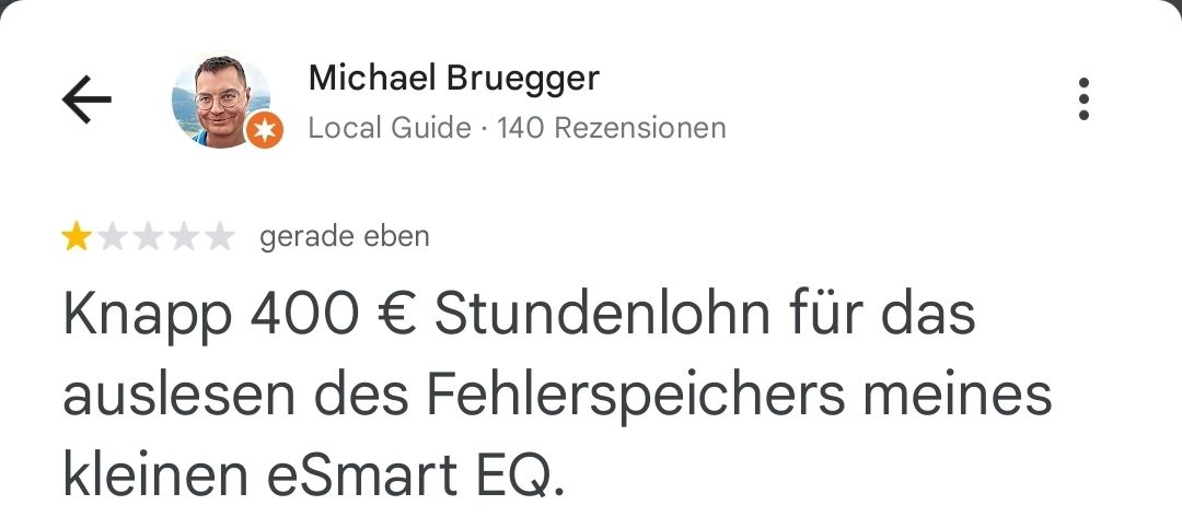 Knapp 400 € Stundenlohn für das auslesen des Fehlerspeichers meines kleinen eSmart EQ.