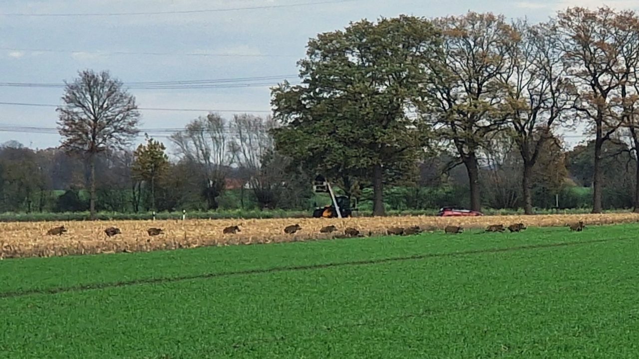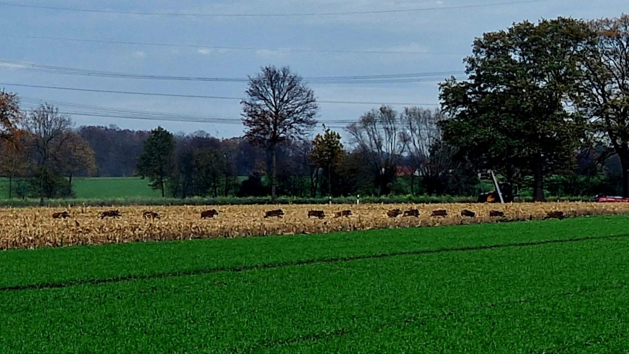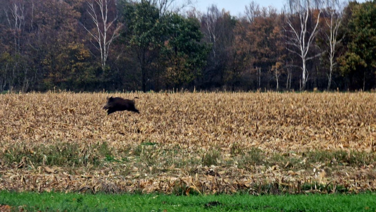 Dann wurde Familie Wildschwein aus dem gegenüber liegenden Maisfeld vertrieben und rannten teilweise in unsere Richtung … Ohoh