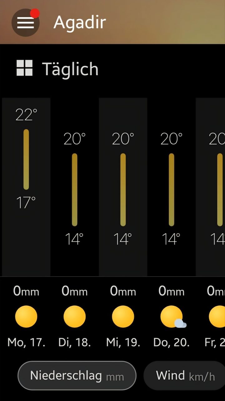 (Marokko) “Frieden sei mit dir”, eine übliche freundliche Art der Begrüßung in muslimisch geprägten Ländern. Im kühlen, den ganzen Tag bereits verregneten Tag in Raddestorf, Deutschland und bereits seit dem späten Nachmittag sehr dunkel, muss ich mich ein wenig vorfreuen.