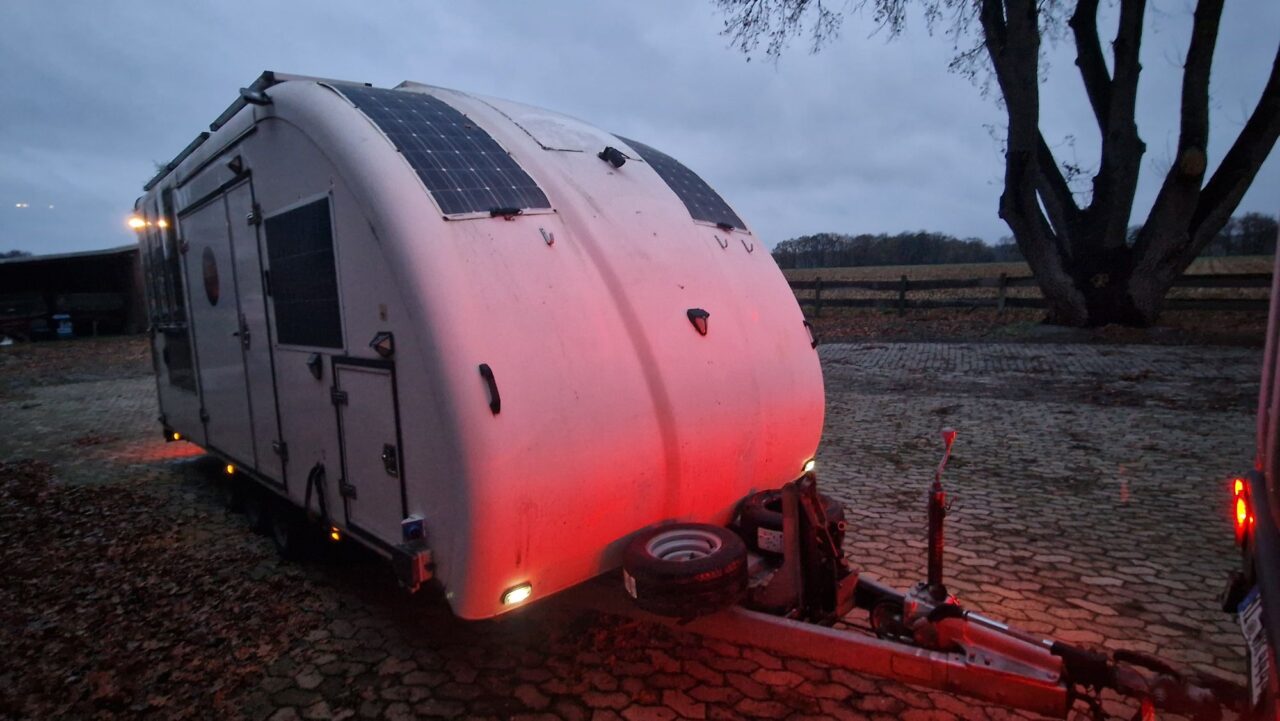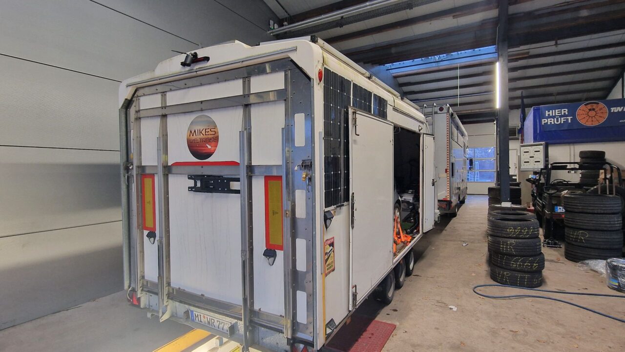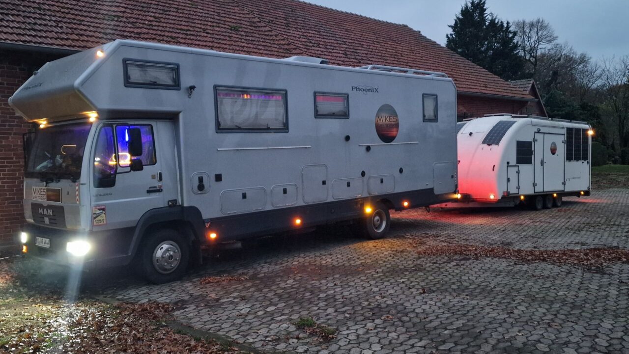Der TÜV Prüfer kommt gegen Mittag. Ich lassen die den Anhänger hier stehen.