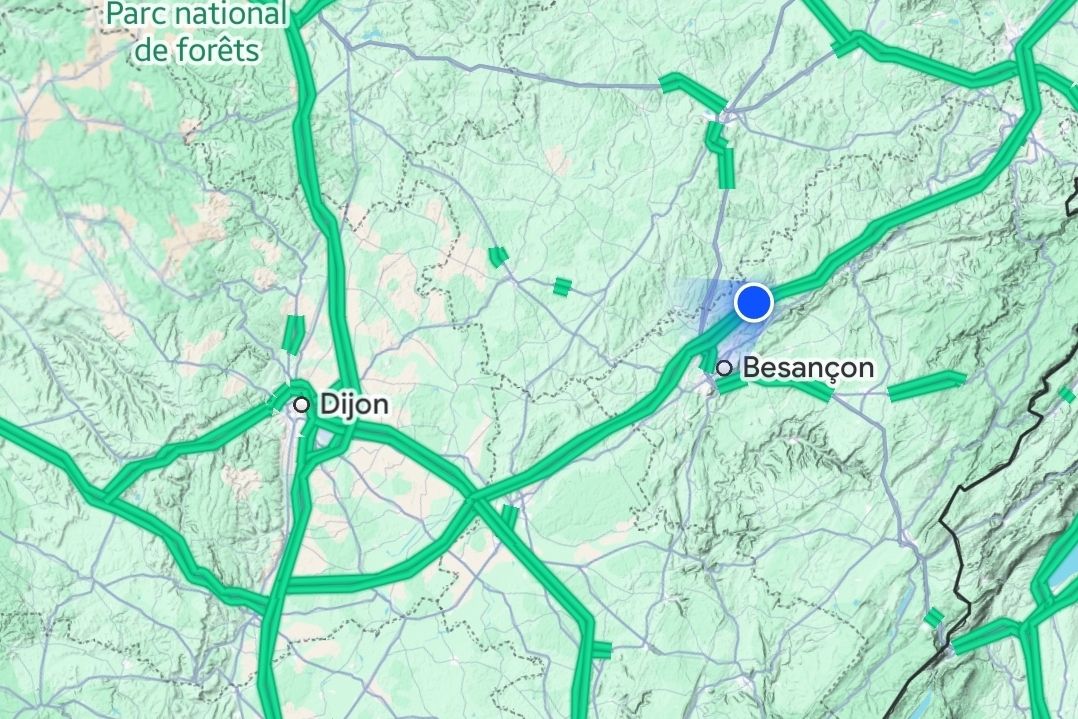 (etwa 230 km nordöstlich von Lyon /Frankreich in den Bergen) Noch knapp 900 km nach Girona /Spanien.