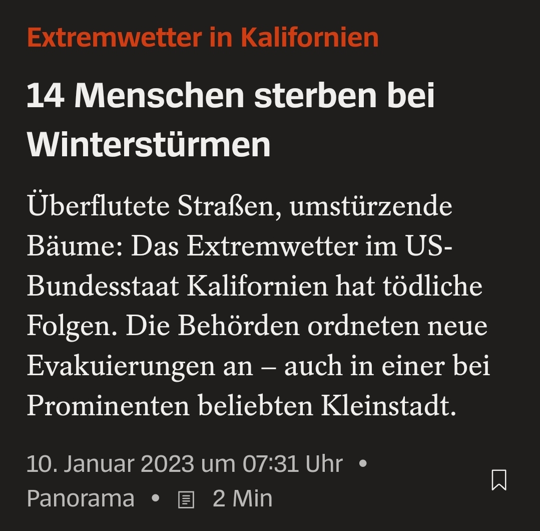Ich habe mir heute einmal die Arbeit gemacht und 126 kurze Screenshots von Berichten (jeweils ein Abriss) nur von diesem Jahr (!) von „regionalen“ Apokalypsen zu erstellen. Und wir haben noch über drei Monate in 2023.
