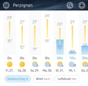 Neues erstes Ziel ist Perpignan, dann an den Pyrenäen östlich vorbei nach Barcelona.