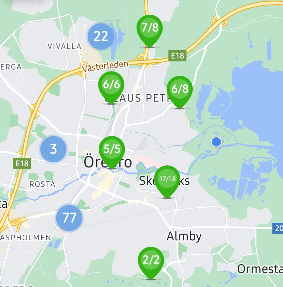 (Örebro) Ich befinde mich mitten in einem wunderschönen Naturreservat. Ganz viel frische Luft, relativ wenig LTE Mobilfunknetz und KEINE Ladestationen für den eSmart im direkten Umkreis.