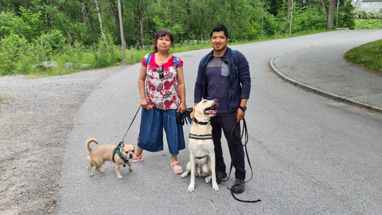 (bei Stockholm) Ich wollte gerade weiter im Dickicht ziemlich steil mit dem Leroy nach oben klettern, als die beiden Finder unten von der Straße mir zuriefen.