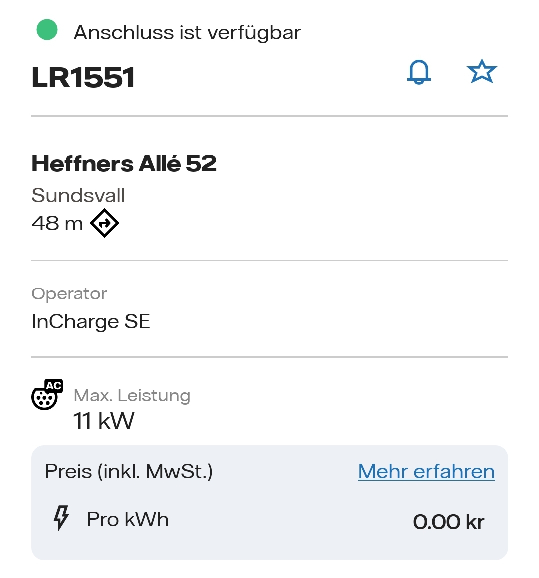(Sundsvall /Mittelschweden) Direkt gegenüber von meinem Standort am Wasser gibt es einen kleinen Parkplatz. Dort hat Vattenfall einige Ladestation installiert.