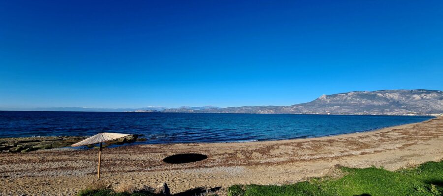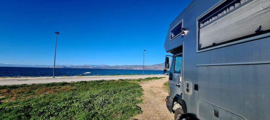 (Korinth, Peloponnes /Griechenland) 2024-12-17 Der neue Standort ist wunderbar. Mitten in der Stadt, direkt am Meer. Ein Supermarkt ist mit