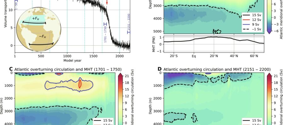 Übersetzung des Fachartikels aus https://www.science.org/doi/10.1126/sciadv.adk1189 Eines der wichtigsten Klima-Kippelemente ist die Atlantische meridionale Umwälzzirkulation (AMOC), die durch den Zustrom von