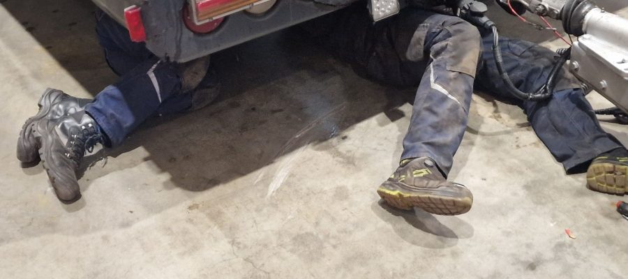 (Petershagen /Deutschland) In der selben riesigen LKW Werkstatt war ich mit dem Anhänger auf dem selben Gelände beim TÜV Nord.